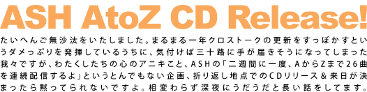 てな感じで久々のクロストークですが、お題は万を持してのASH!「AtoZ vol.1」リリース&祝来日!ということで。 |