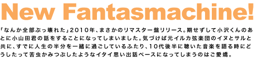 はは!コーネリアス97年の名盤「Fantasma」が、2010年にリマスター盤としてリリースされる、しかもそのリマスターを手がけるのが、砂原"まりん"良徳という、この世代は食いつかざるを得ないビッグリリースが。っていうか、13年も前のアルバムだって事にショックを覚えなかった?